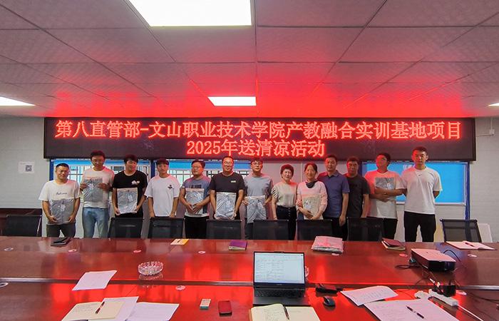 • 7月18日,第八直管部工會到文山職業技術學院產教融合實訓基地項目開展2025年送清涼活動,為堅守一線職工發放了防曬服,送上直管部工會最真摯的關懷。